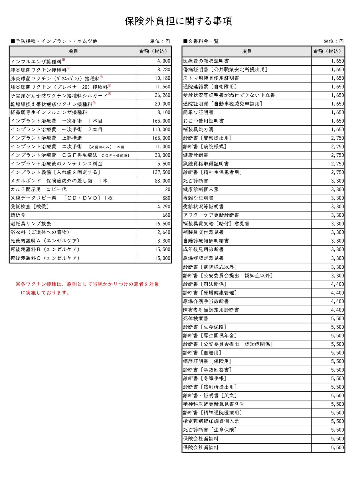 当院では、他の医療機関からの紹介によらず直接来院された方については、初診に係る費用として医科7,700円、歯科5,500円をいただきます。