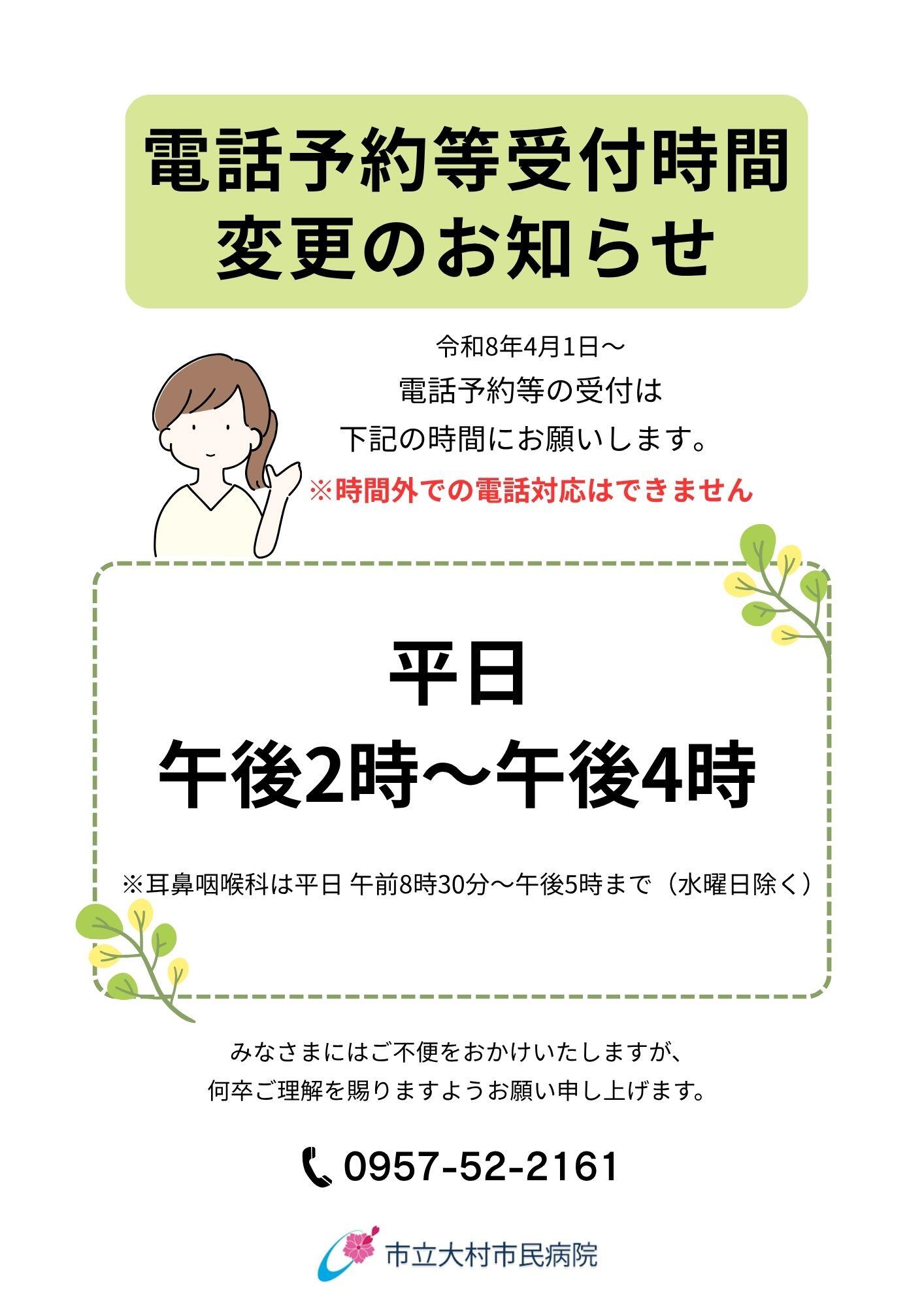 令和8年4月1日~ 電話予約等受付時間変更のお知らせ