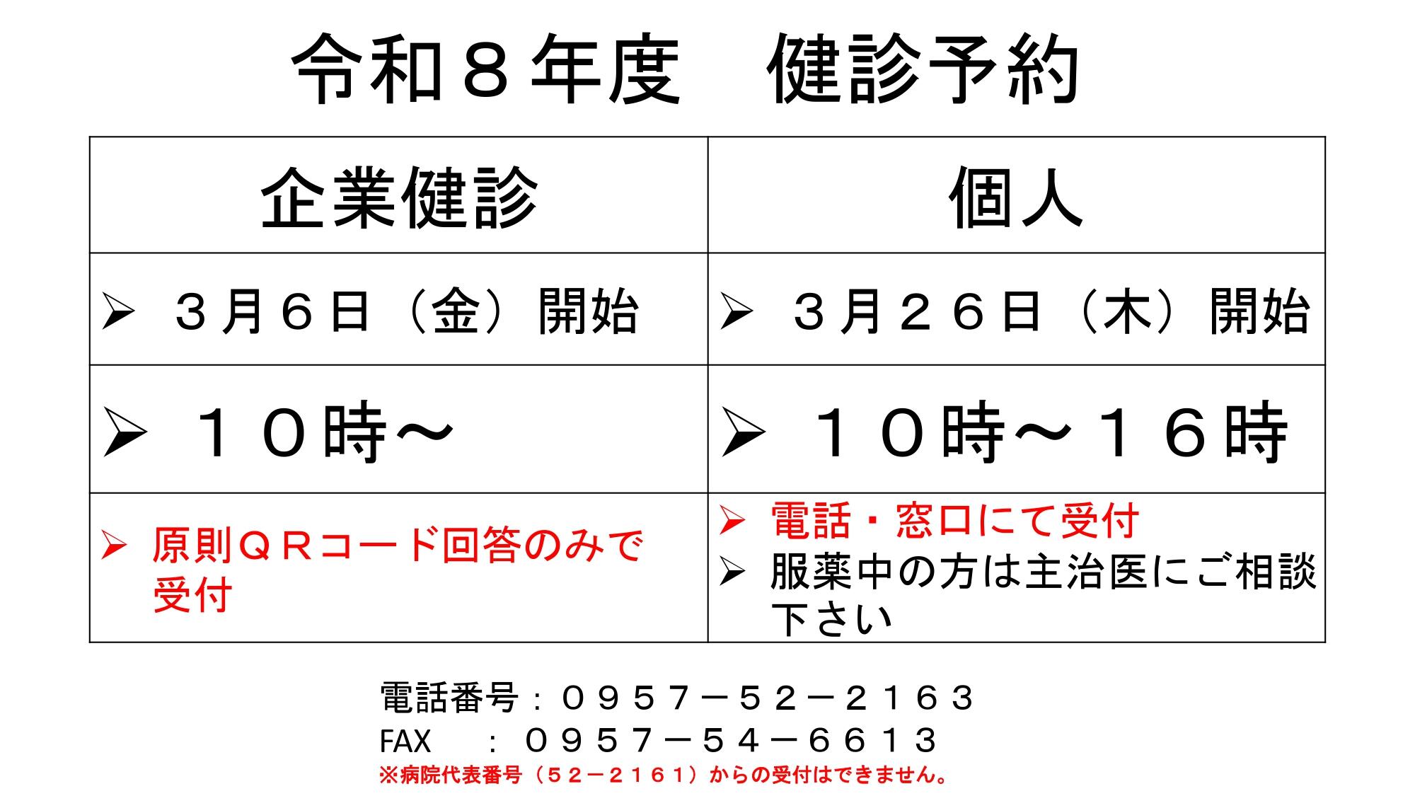 > R8年度企業健診および個人健診のお申込に関するお知らせ